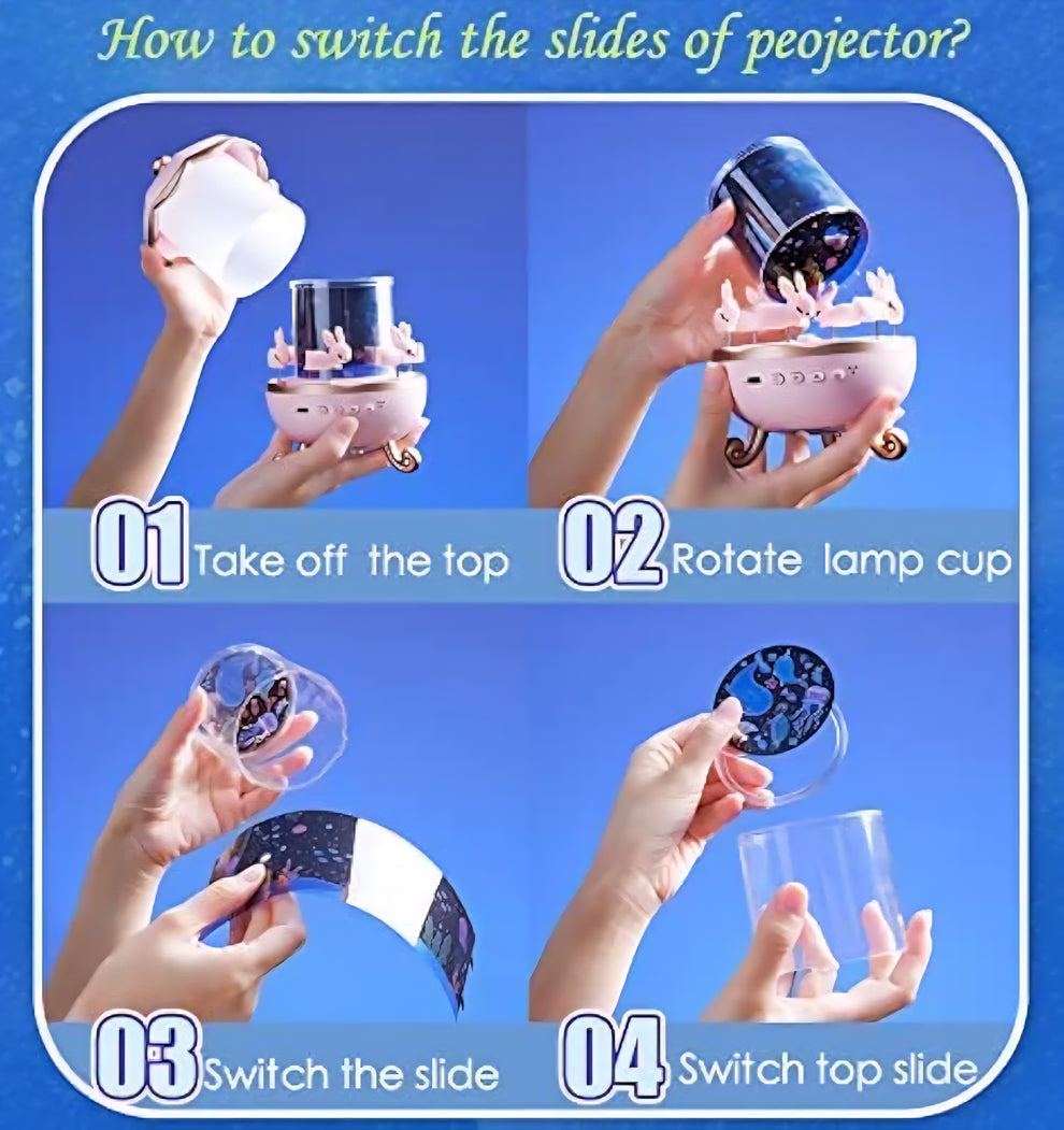 The 6in1 Star Light Projector features rotating projection, 6 interchangeable films, color-changing lights, and USB rechargeability for a calming, magical experience. Available at Wamachua Toys.