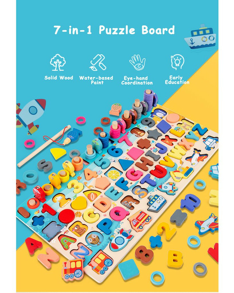 7 in 1 Montessori Board Early Educational Learning 123 ABC hand-eye cordination