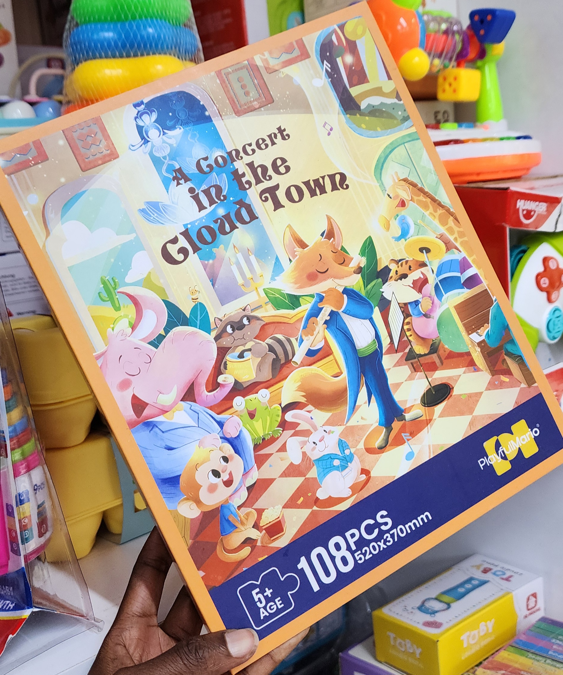 The A Concert in the Cloud Town – 108pcs Puzzle Set is an educational puzzle that develops problem-solving, concentration, and fine motor skills through fun, imaginative play. Available at Wamachua Toys.