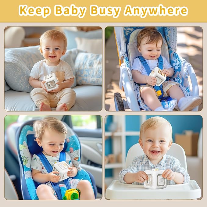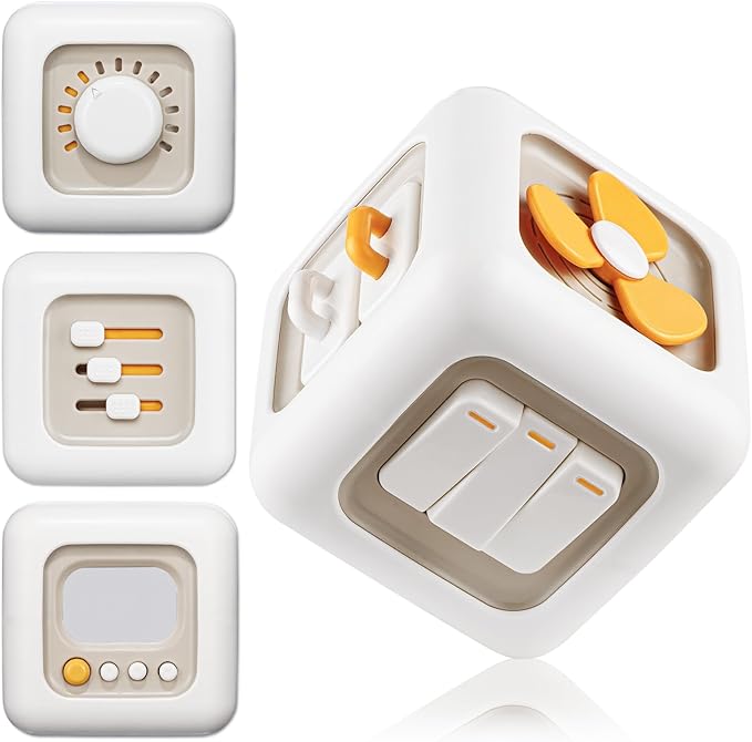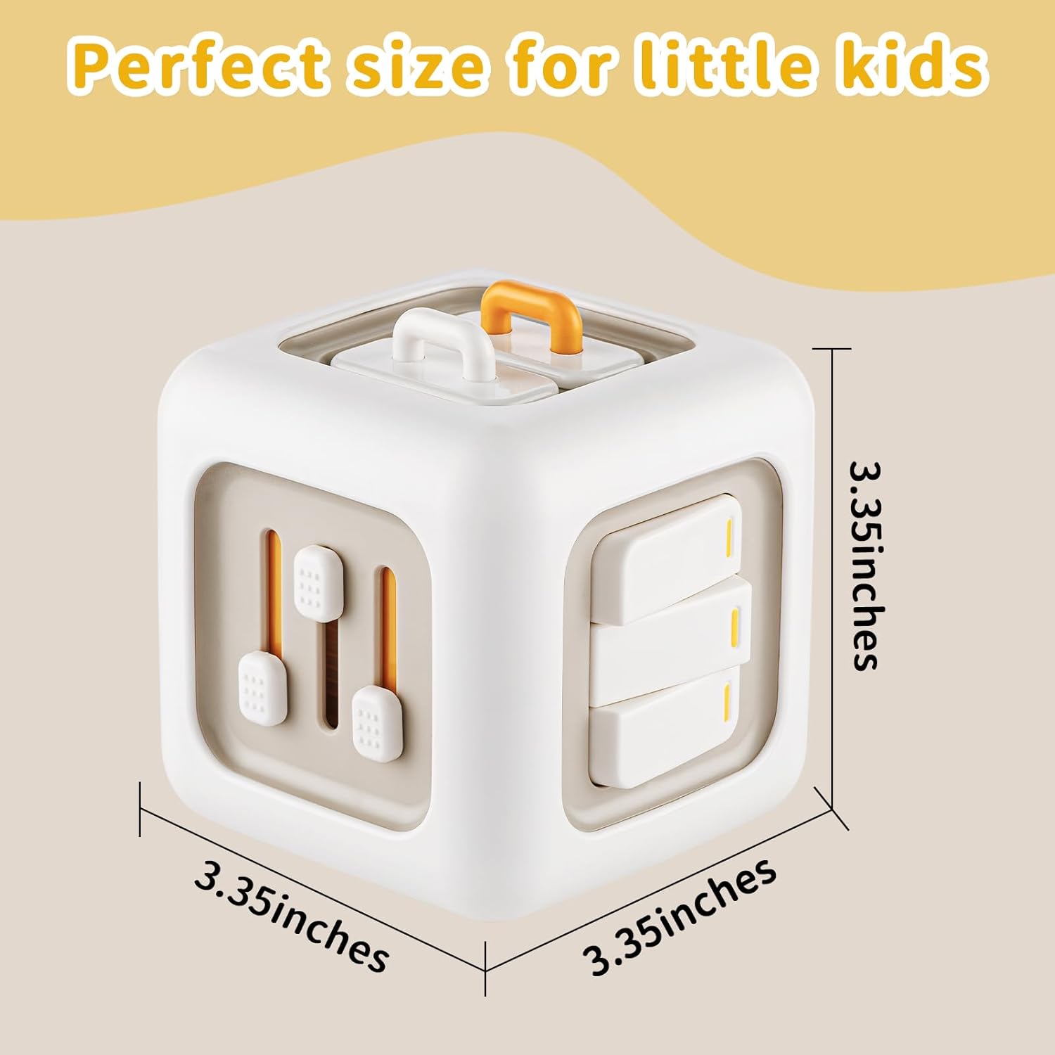 Wamachua Toys Baby Activity Cube is a portable Montessori busy board toy for 12–18 months (1 year old) boys and girls. It features mirror, slider, drawer, switch buttons, fan blades, and a twistable timer to boost hand-eye coordination, fine motor skills, and curiosity. Made from durable ABS with smooth edges, it’s perfect for car travel and airplane trips.