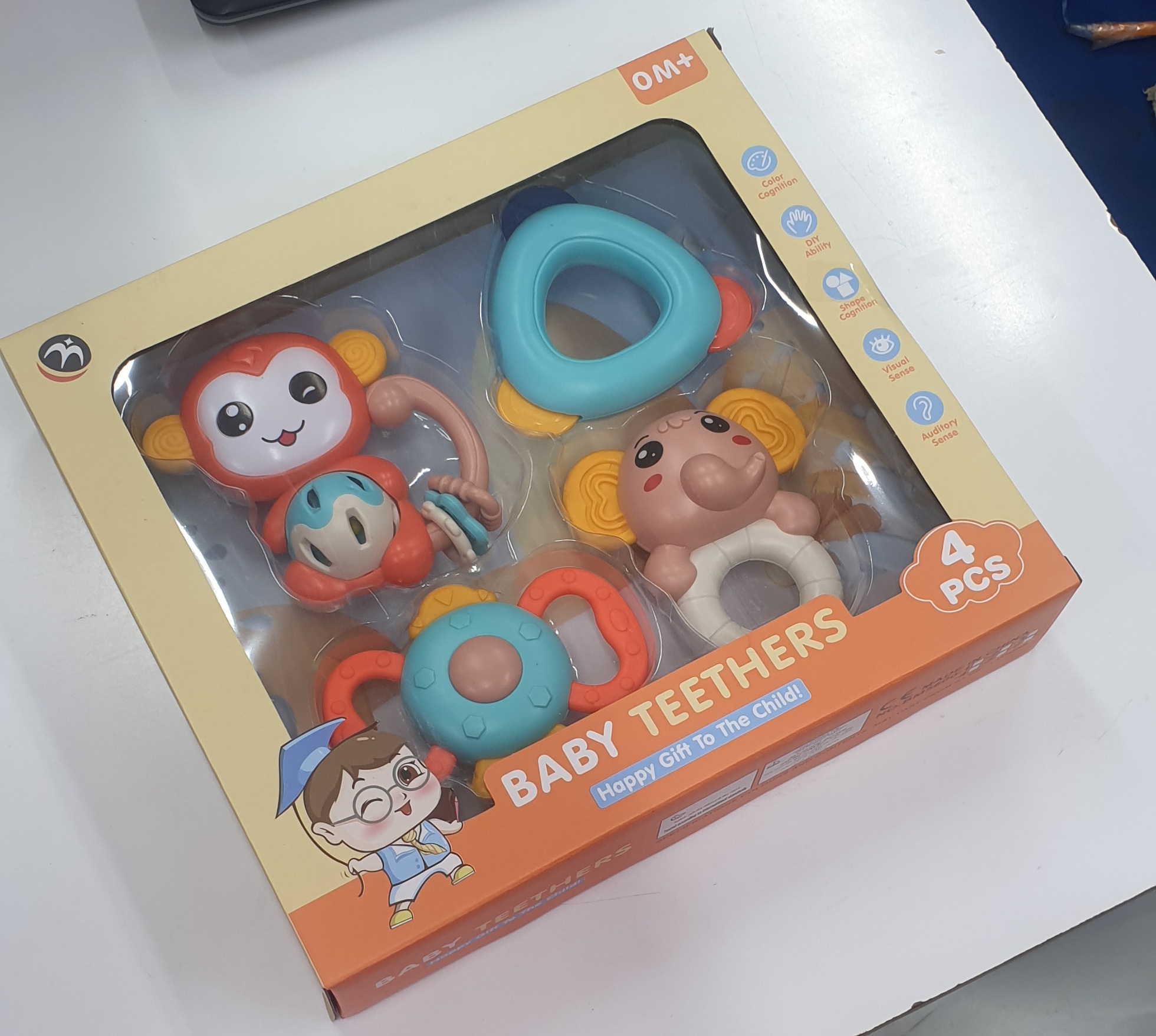 Wamachua Toys 4-Piece Shaker Set for infants 0-6 months. Soft, gentle sounds & safe plastic with soft edges for nibbling. Bright colors, interactive sound effects, and easy-grip textures to stimulate sensory development and motor skills.
