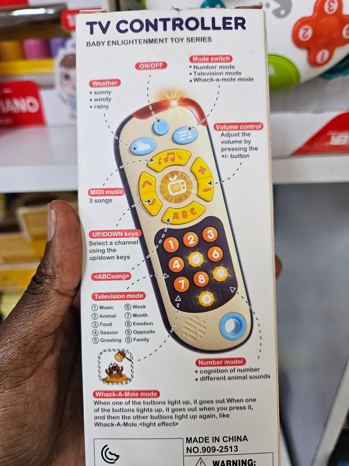 Baby TV Remote Toy by Wamachua Toys is a safe and interactive learning toy for babies 6 months and above. It enhances fine motor skills and early sensory development.