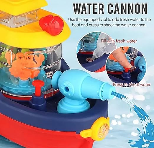 Battery Operated Bump and Go Musical Water Cannon Boat Ship Toy for Kids 3+ Years Old Boy Girl