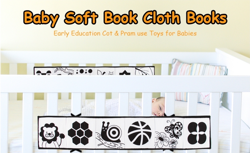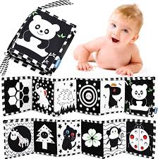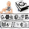 Black and White High Contrast Baby Sensory Cloth Book by Wamachua Toys is a double-sided soft fabric book for newborn tummy time. High-contrast patterns support visual development and early sensory learning.