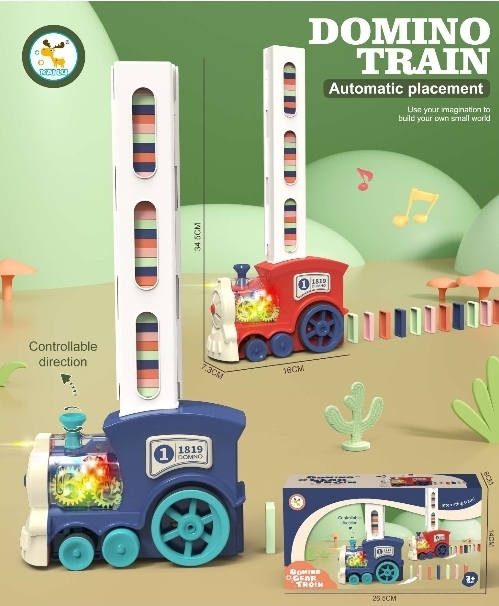 Wamachua Toys Domino Train Set Toy is an automatic laying train that places dominoes as it moves, creating exciting patterns for kids to knock down. It promotes creativity, problem-solving, and hand-eye coordination through interactive play.