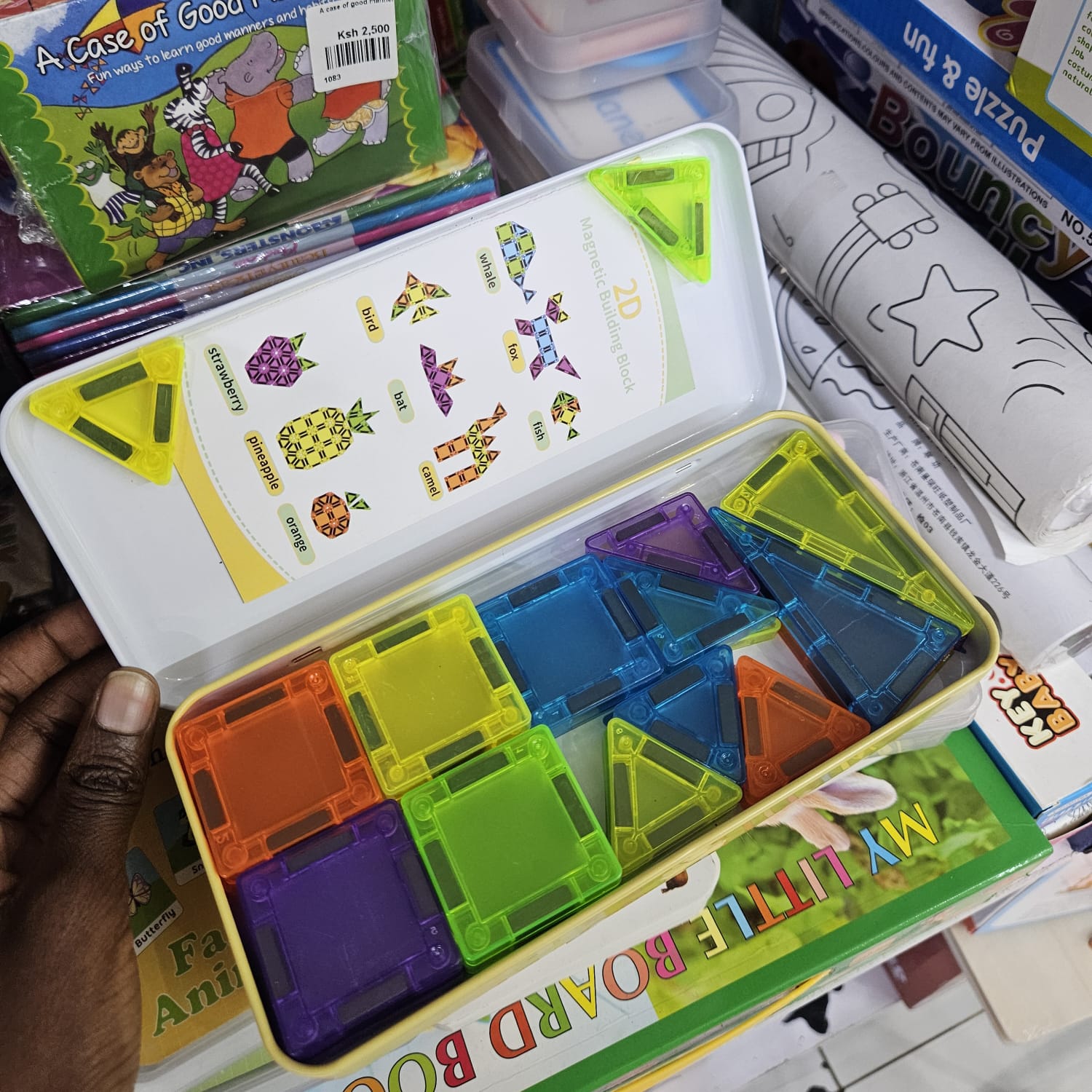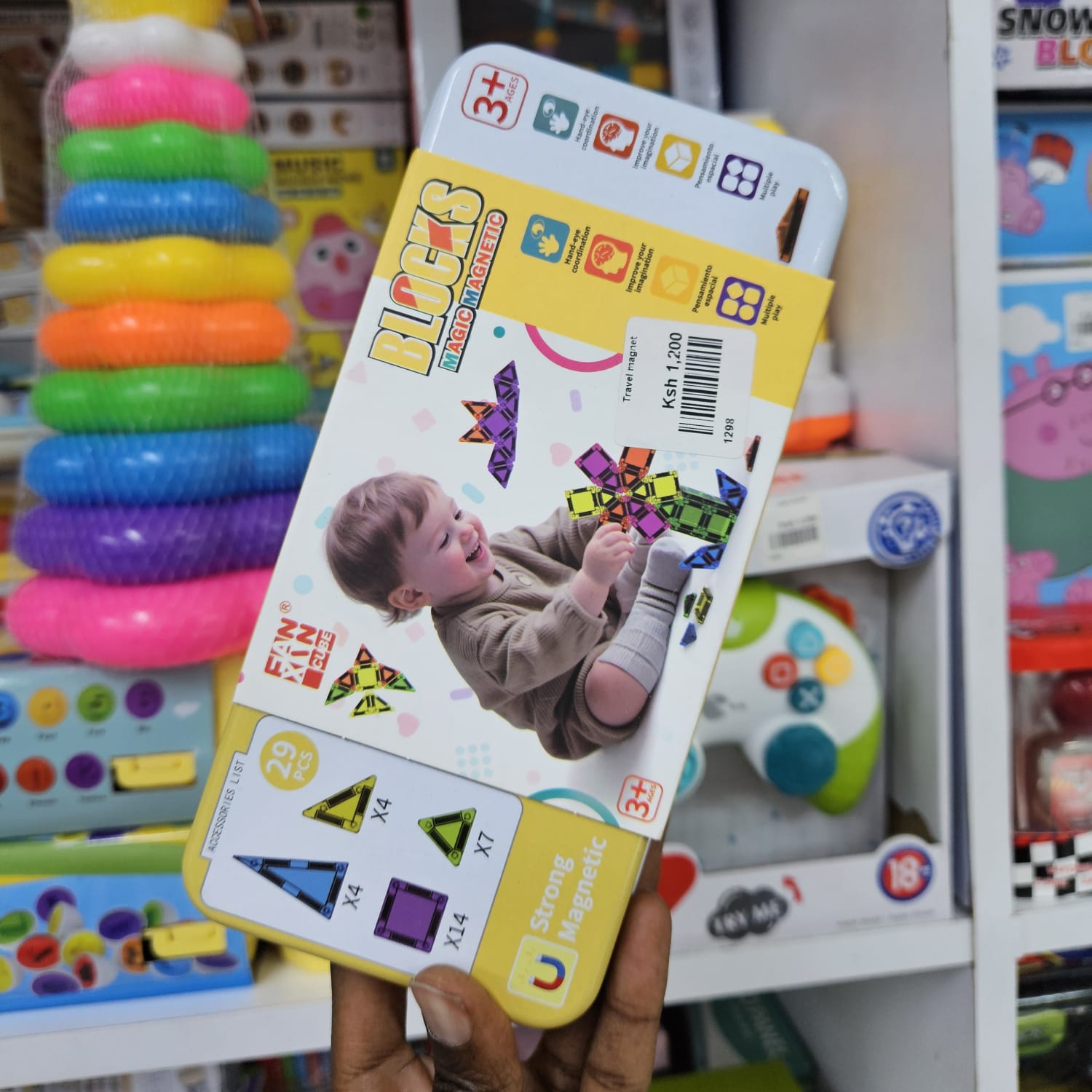 Mini Travel Magnetic Tiles are compact educational building toys designed for on-the-go play, helping children develop creativity and problem-solving skills. Includes 29 pcs. Available at Wamachua Toys.