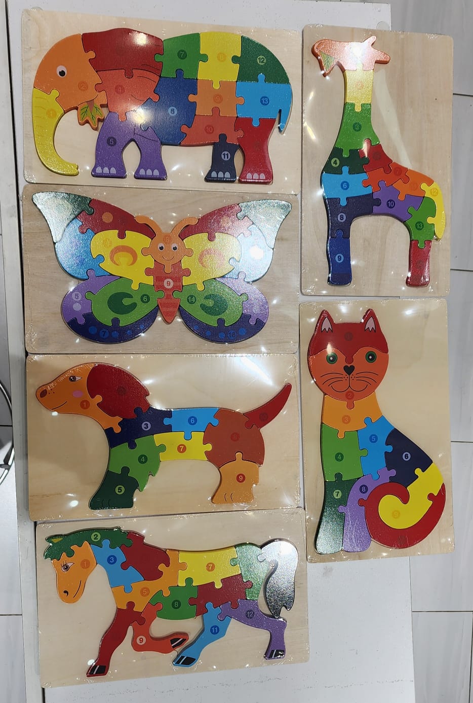 Animals Jigsaw Puzzles by Wamachua Toys for ages 2–5. Educational animal puzzles with 6 variations: Cat, Giraffe, Horse, Dog, Butterfly & Elephant