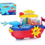 Battery Operated Bump and Go Musical Water Cannon Boat Ship Toy for Kids 3+ Years Old Boy Girl |